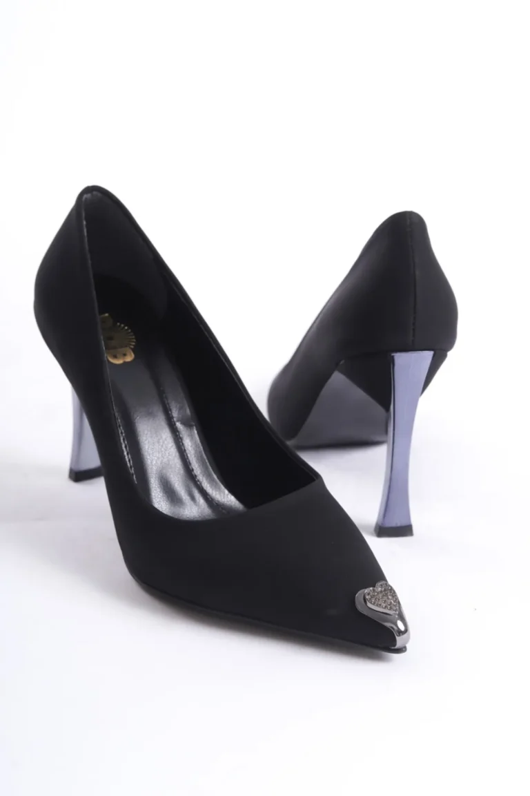 Siyah Renk Gümüş Topuklu Stiletto – 9 cm Tokalı Zarafet ve Modern Şıklığın Tamamlayıcısı