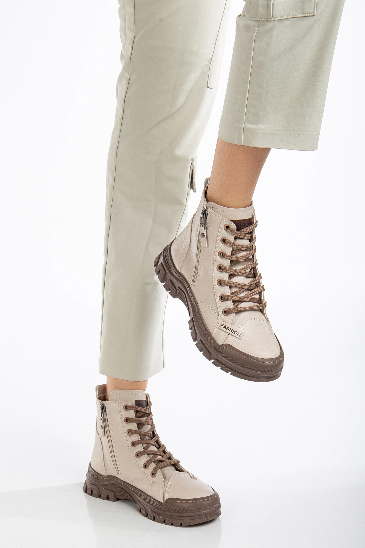 Bej Fermuarlı Kışlık Kadın Bot – Yeni Sezon 2024, Şık ve Dayanıklı Kadın Bot ve Çizme